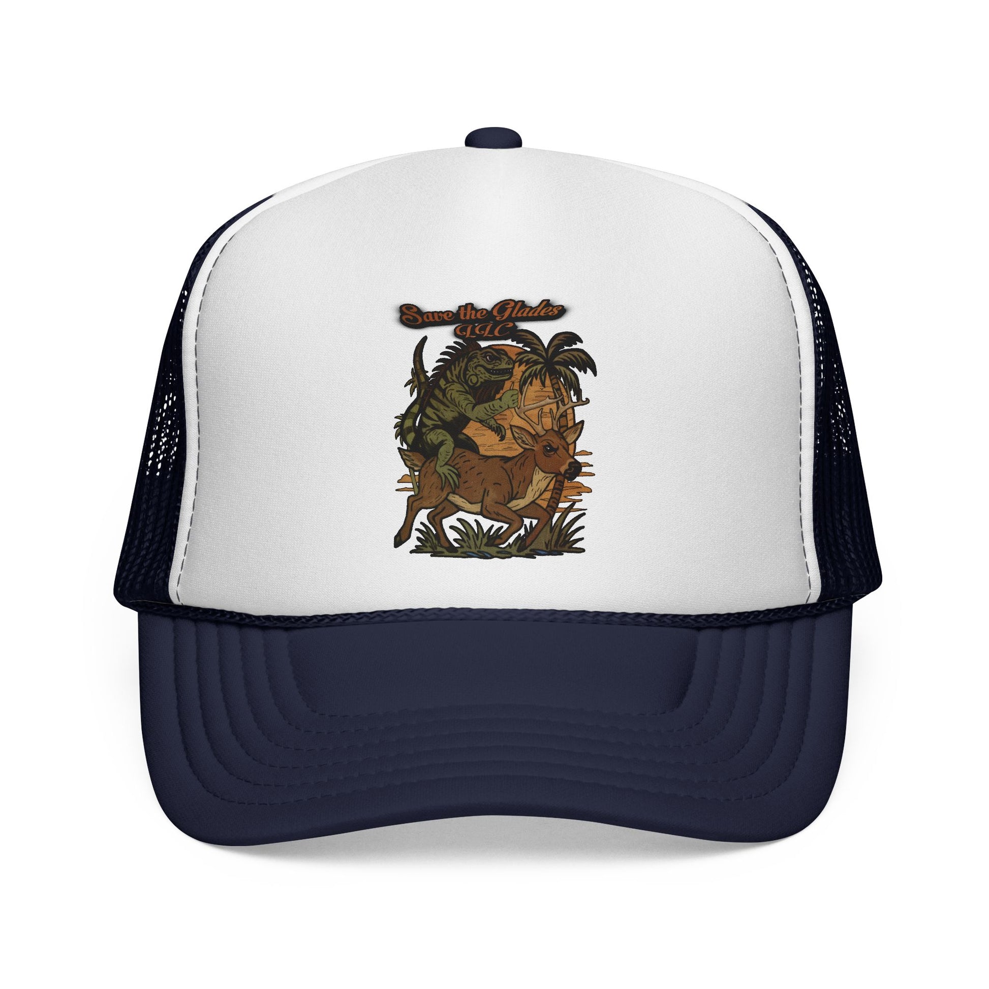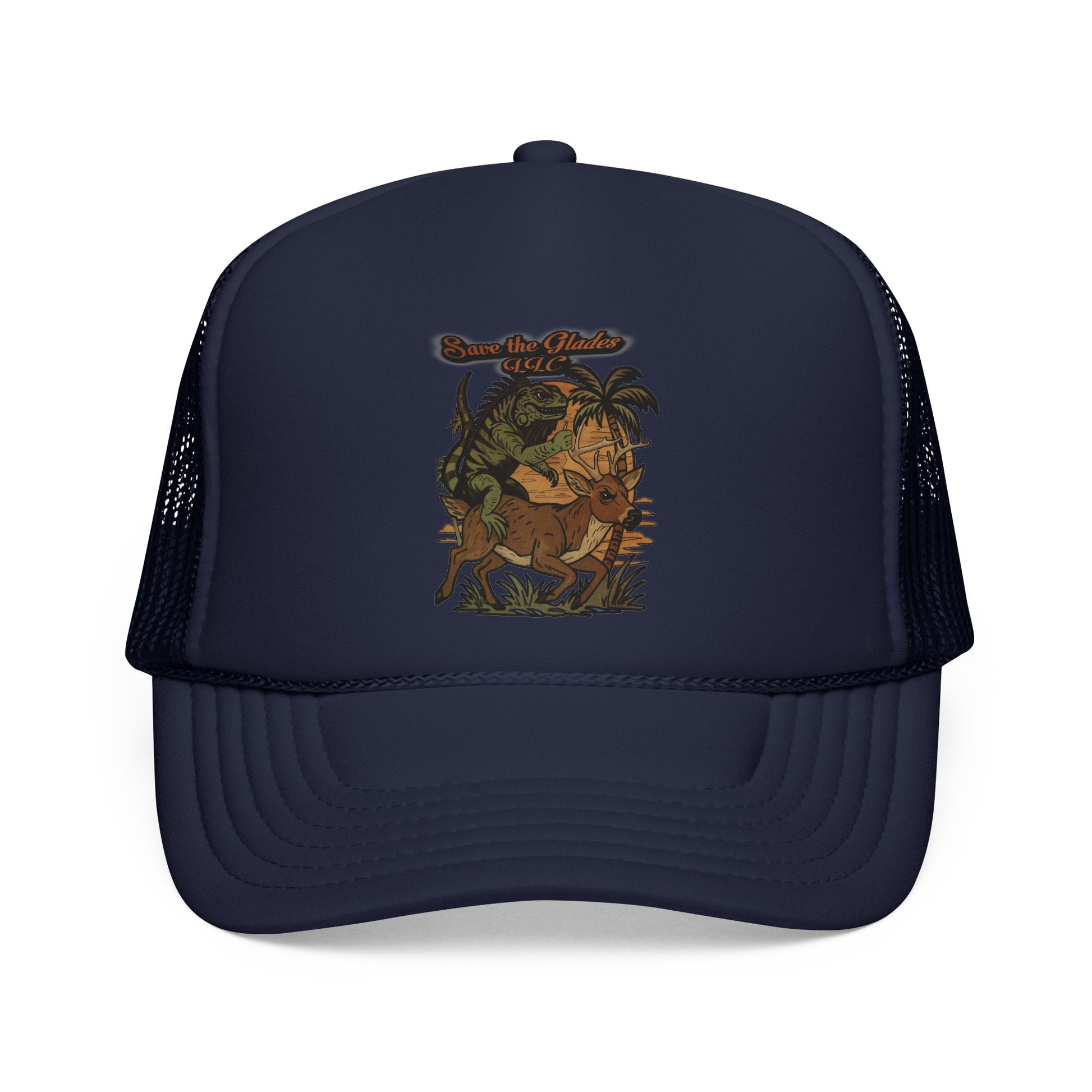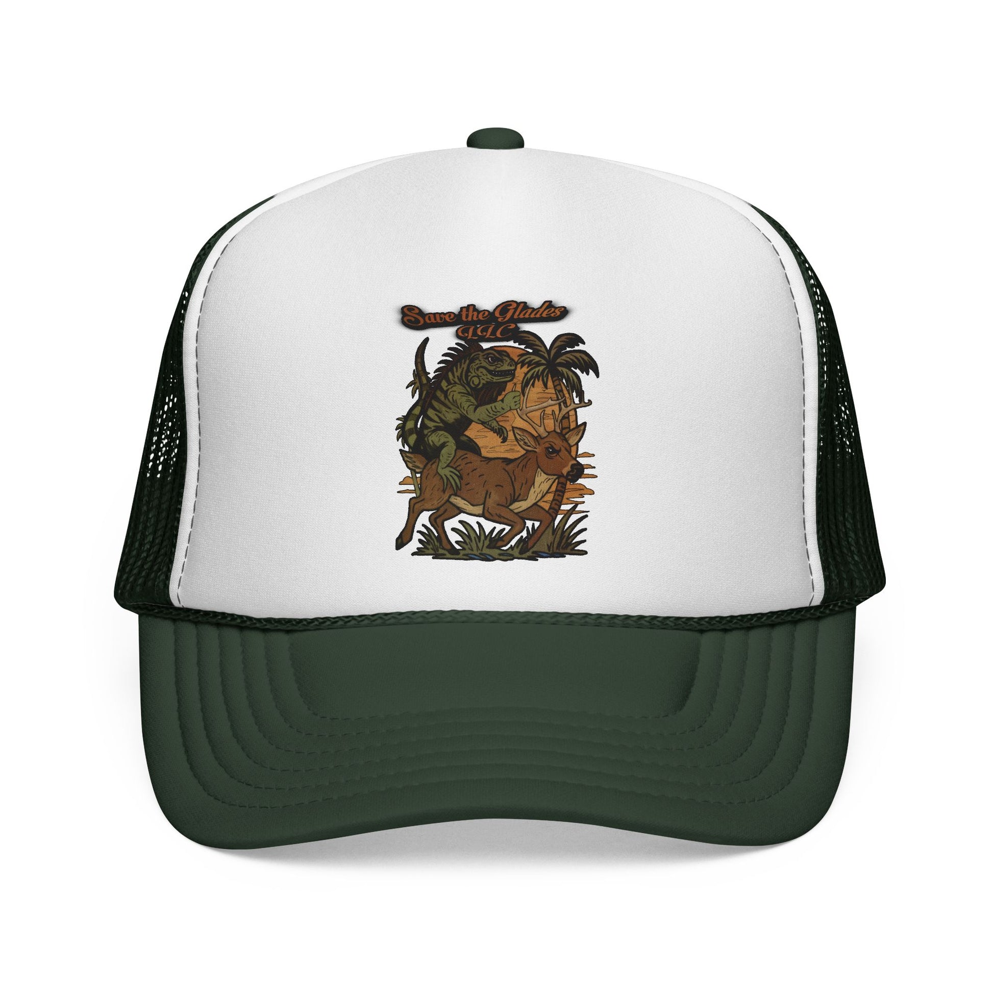 This trucker cap brings warm, nature-soaked energy to casual days and outdoor afternoons. A crisp foam front showcases a detailed, earth-toned illustration of foliage and wildlife, while the ventilated mesh back keeps you cool when the sun climbs. The adjustable snap lets you dial in a comfortable fit, and thoughtfully color-matched details—undervisor, sweatband and braid—give a clean, finished look. Wear it on trail runs, at campsite fires, or while running town errands to add a subtle, rustic statement to any outfit.